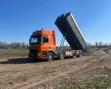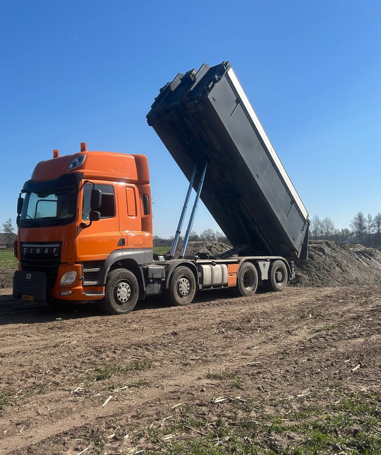 Met onze DAF met kieptrailer, zand auto en trekker met kieper zorgen we voor de aan- en afvoer van grote hoeveelheden materialen. Dit kan gaan om het leveren van nieuw zand voor een zandbed, het afvoeren van vrijgekomen grond na een uitgraving, of het leveren van puin voor een oprit of looppad. De focus ligt hierbij op het vlot en grootschalig verplaatsen van bulkmaterialen.
